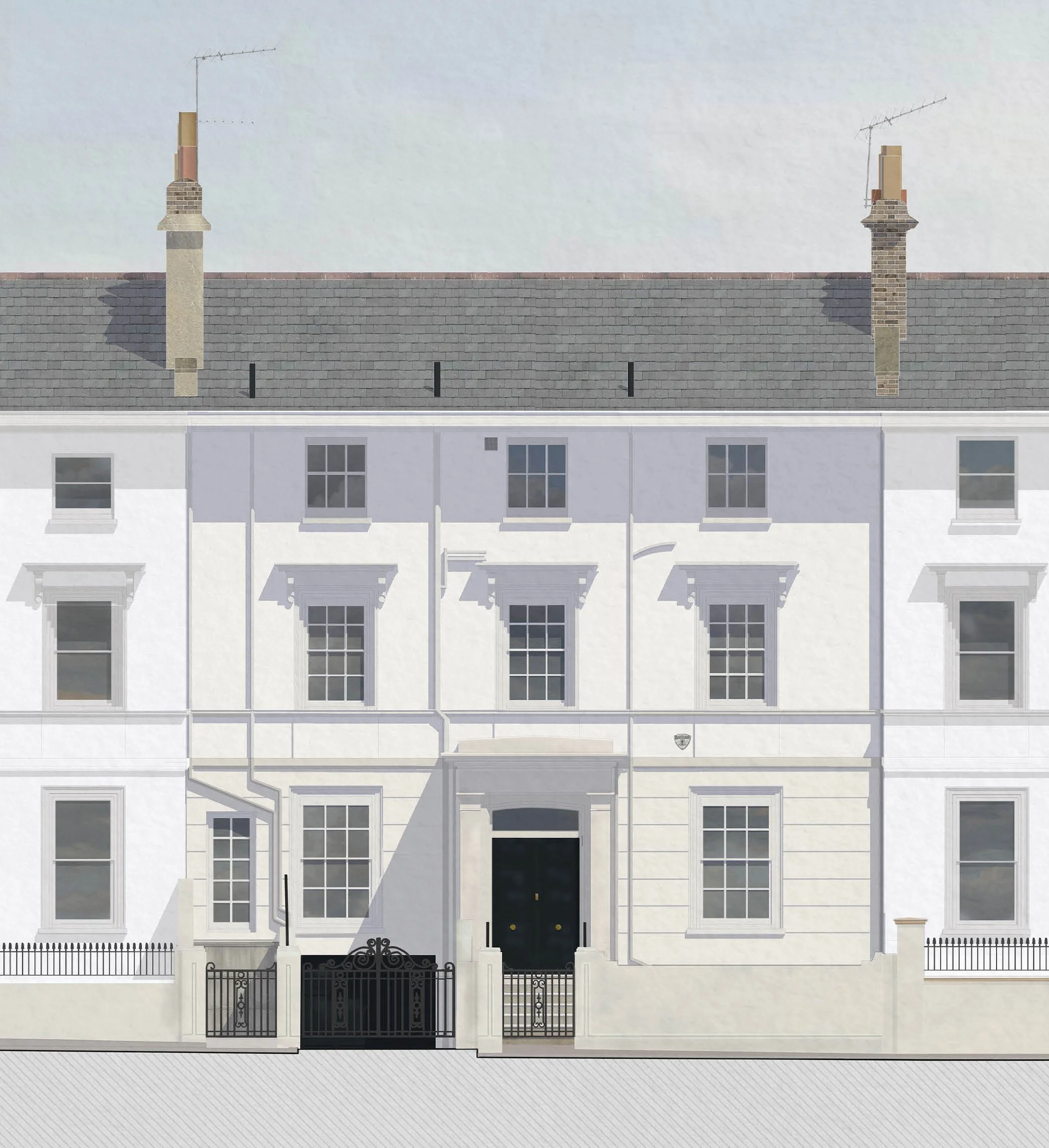 These subtle changes provide a set of flexible and high quality floor spaces. A master suite occupies the entire first floor, whereas at second floor two new ensuite shower rooms are proposed to the rear bedrooms, with the front bedrooms restored to their original proportions.